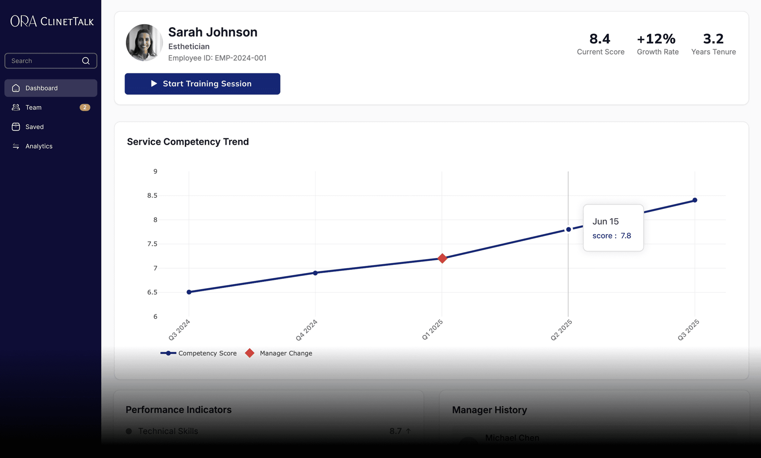 Mentivista (Client: ORA Space), an AI-powered LMS for beauty & wellness businesses. This project focused on the 'Shadowing Training' feature, enabling managers to review transcripts and coach sales representatives on compliance and empathy.