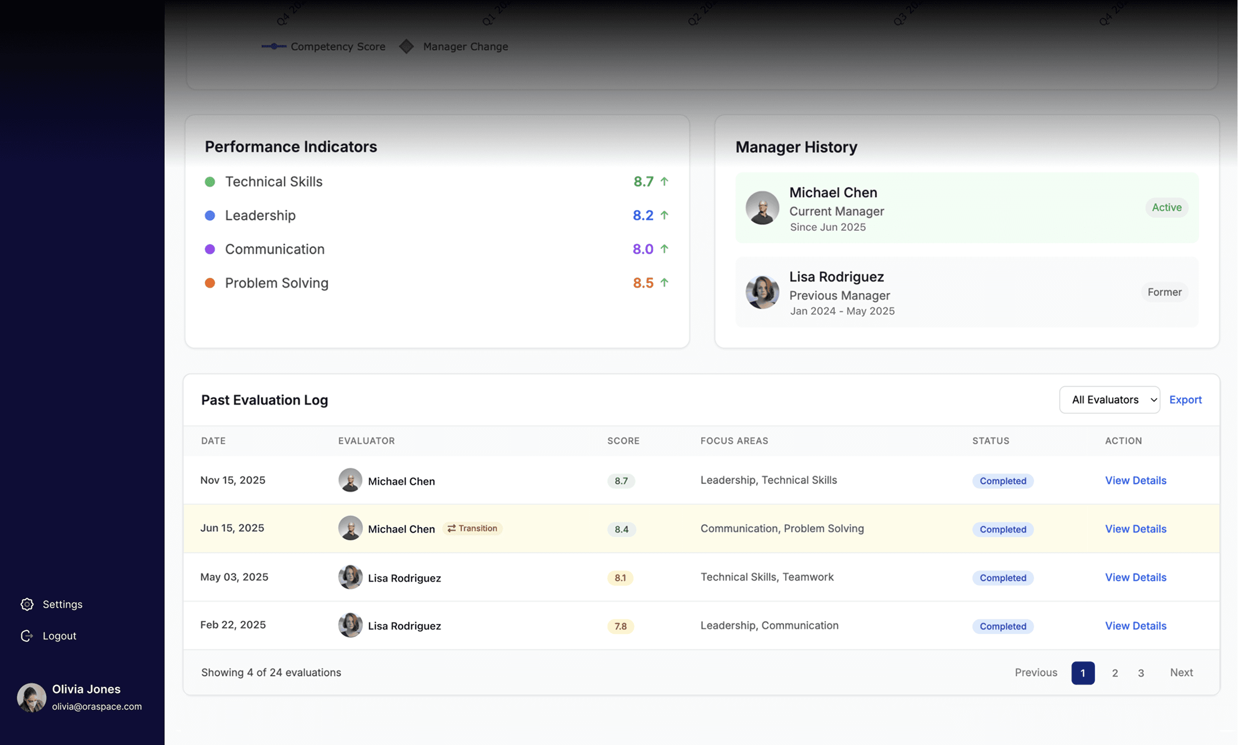 Manager transitions are explicitly preserved to ensure historical judgments remain attributable and interpretable across organizational changes.